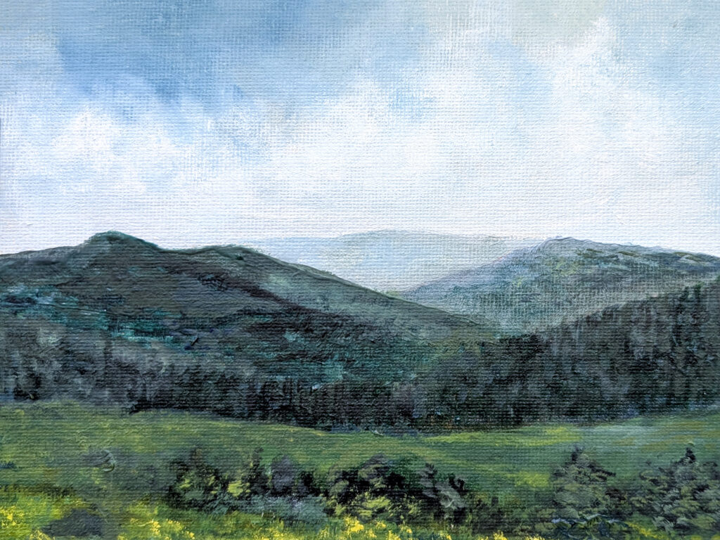 This exhibition was organized by Liz Slot, Education Director, and was made possible thanks to the generous support of the Montana Arts Council, an agency of the state government; the National Endowment for the Gabrielle Delaney, “Springtime in the Little Belts,” 2025, Oil on Canvas Board, created in the Senior Art Program. This painting is one of 90 works of art featured in the exhibition by seniors, veterans, and Easterseals-Goodwill clients. Arts; Easterseals-Goodwill Northern Rocky Mountain; the Great Falls Vet Center; and an Anonymous Private Foundation.